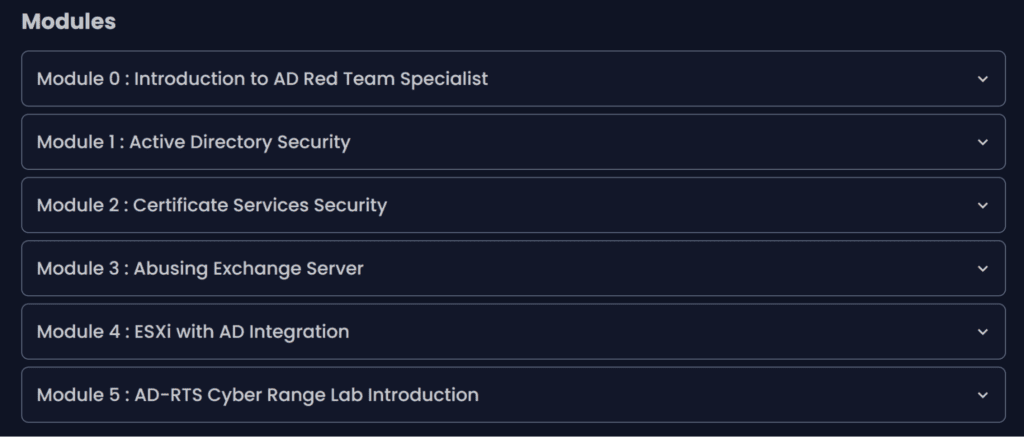 - Adversary-focused: The curriculum mirrors real attacker tradecraft against AD, Exchange, Certificate Services and hypervisors.